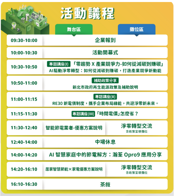 活動現場除邀請專家深入解析 AI 節電趨勢與導入策略外,亦將提供企業與民眾專屬導入資源與實用節能方案。誠摯邀請您蒞臨參與「2025 新北淨零生活新未來」年度盛會,攜手共創高效、低碳、永續的智慧生活新典範。